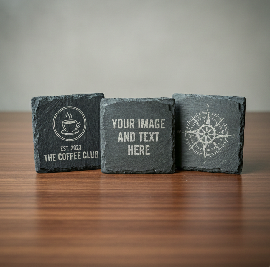 Bring style, utility, and personalization into harmony with our slate coaster pack. With the freedom to choose designs that speak to you, these coasters make an unforgettable statement at every table. Order your set today and enjoy the elegance of custom-crafted coasters tailored just for you!